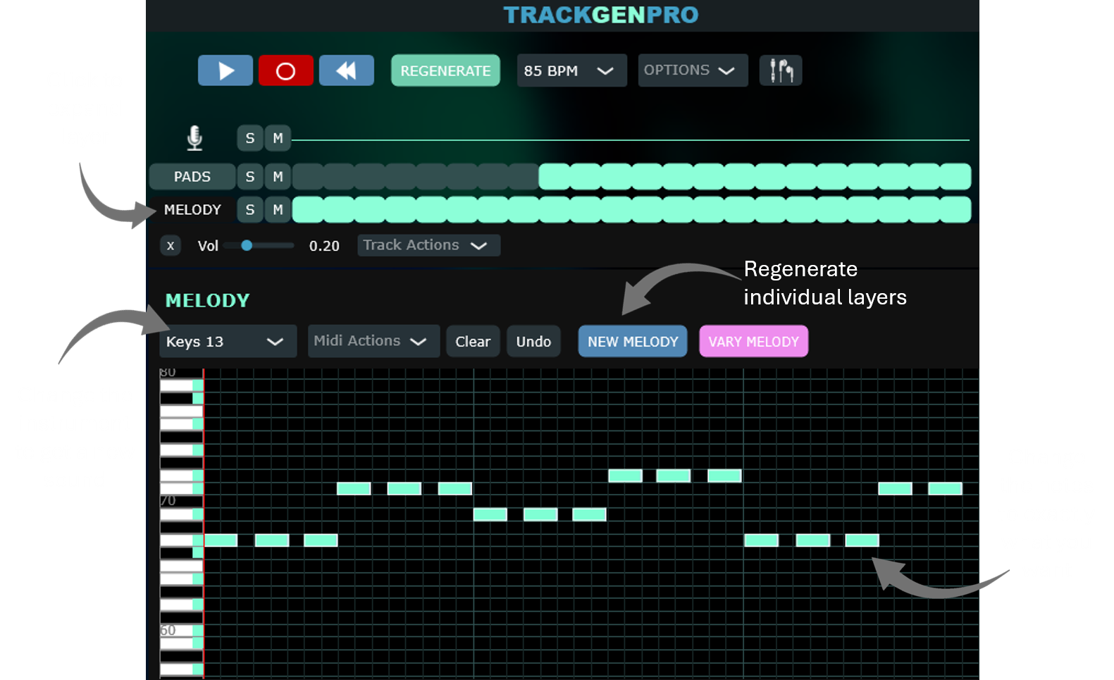 EXPAND LAYERS TO CHANGE THE INSTRUMENT AND THE PATTERN. EVEN REGENERATE THE LAYER GIVING YOU FULL CONTROL.
